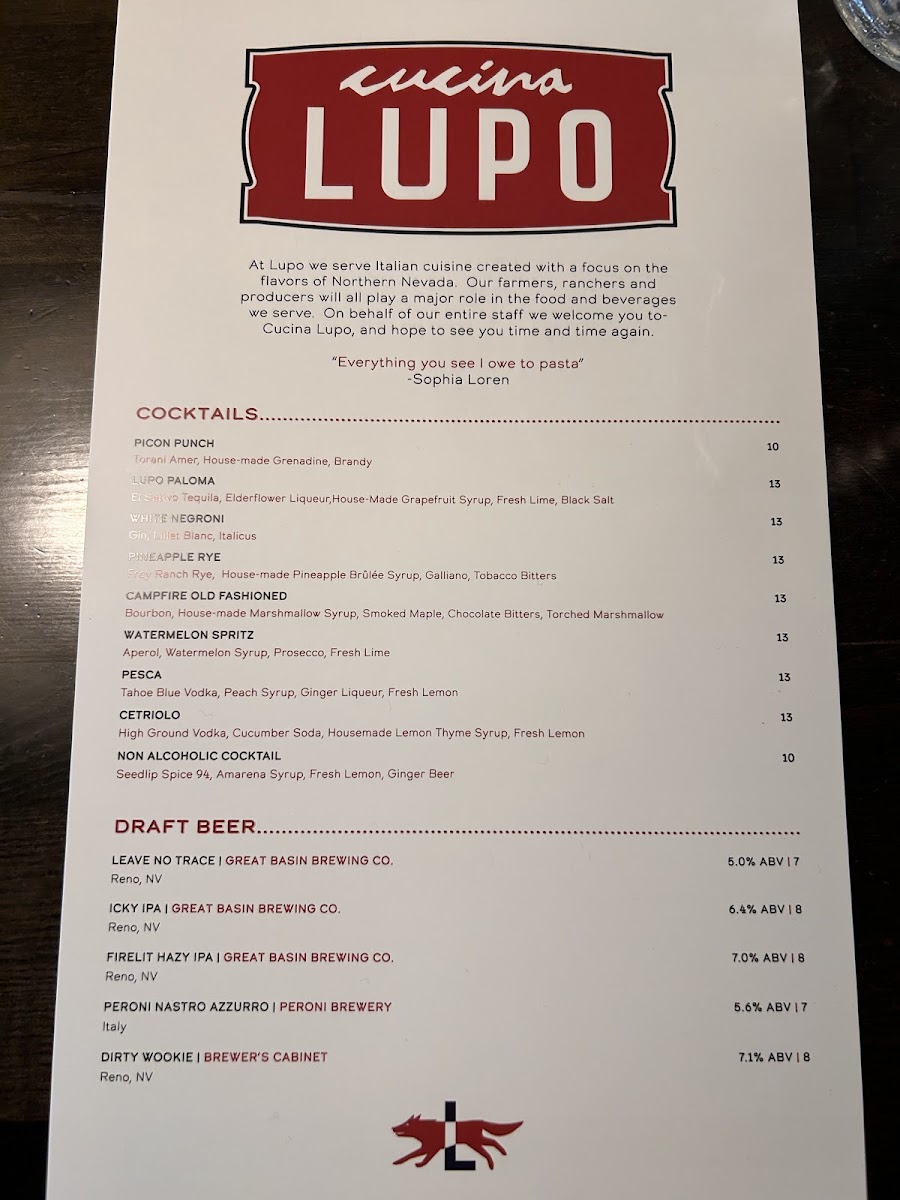 Welcome to Cucina Lupo, a hidden gem nestled in the heart of Carson City, NV, where authentic Italian flavors entwine with modern culinary artistry. Set at 308 N Curry St, Cucina Lupo offers an inviting dining atmosphere that boasts both indoor elegance and a charming outdoor patio, perfect for a relaxed meal under the Nevada sunshine or a candlelit dinner under the stars.